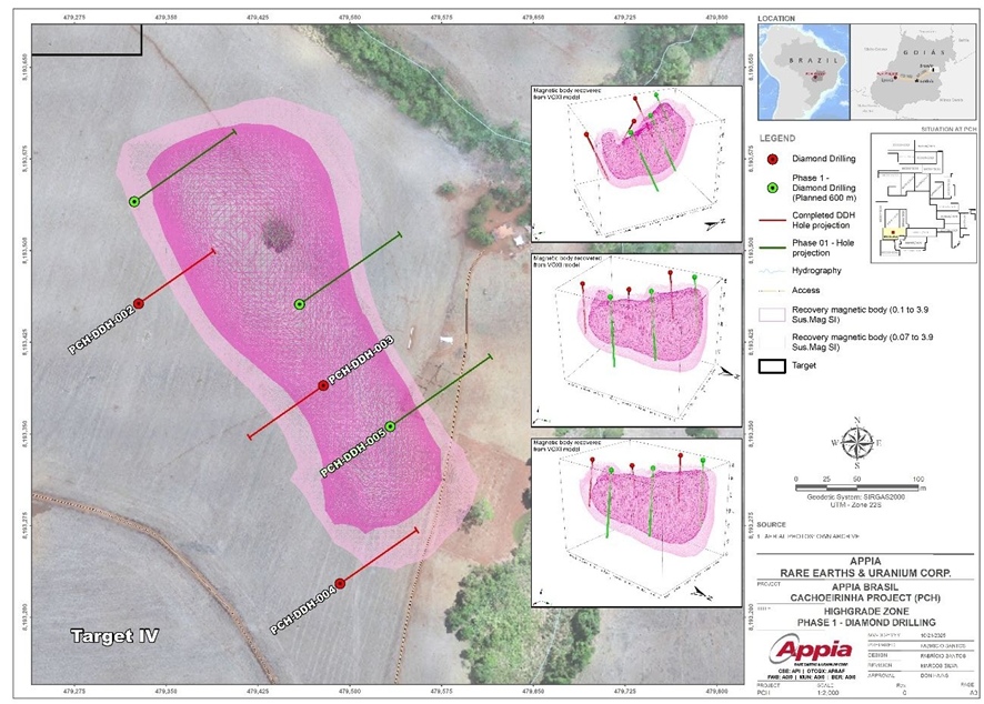 TORONTO, ON, October 22, 2025, Appia Rare Earths & Uranium Corp. (the “Company” or “Appia”) (CSE: API) (OTCQB: APAAF) (FWB: A0I0) (MUN: A0I0) (BER: A0I0) is excited to announce the commencement of its diamond drilling program in the southwest corner of Target IV. The goal of this program is to extend and delineate the High-Grade Rare-Earth Elements (REE) Mineralization (High Grade Zone) to the SW, NW and at depth, identified in the previous 3 diamond drill holes (See January 22th 2025 Press Release), associated with a carbonatitic breccia intrusion or dike.